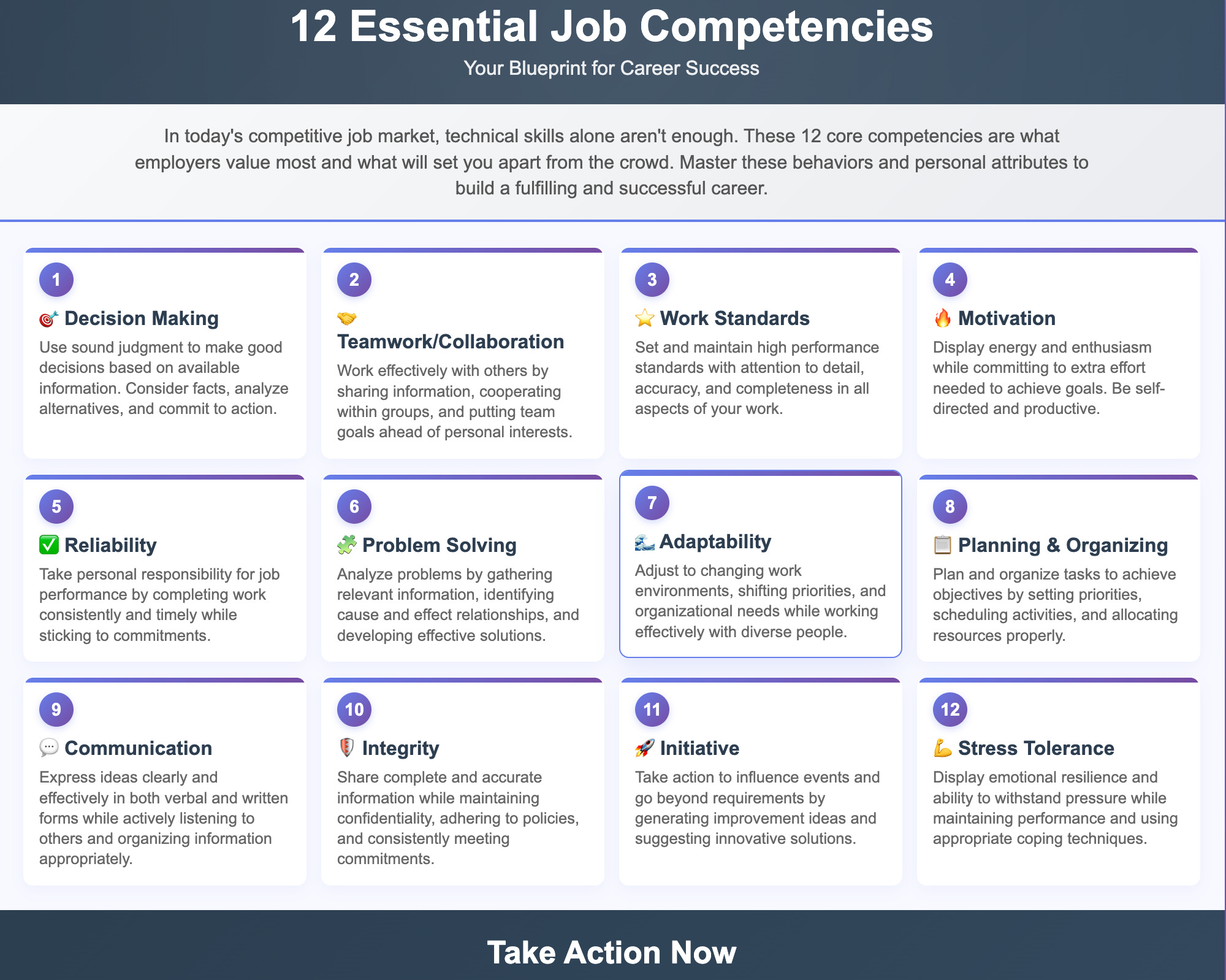 We've broken down 12 essential competencies that are crucial for job success, based on a comprehensive framework used by many organizations. By understanding and developing these skills, you can become a more effective, valuable, and indispensable employee.